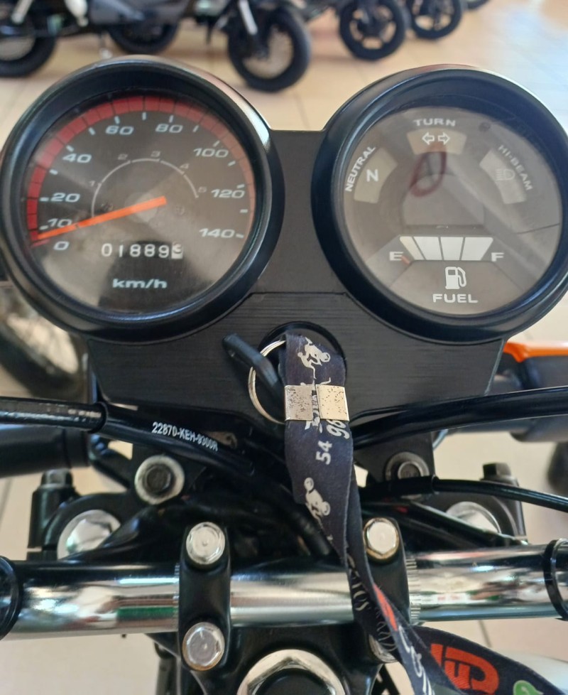 REVISADA PELA LOJA , NADA POR FAZER A NÃO SER ABASTECER E ANDAR ,PNEUS, RELAÇÃO, FILTRO ,BUCHAS , ROLAMENTOS, FREIOS, ELÉTRICA GERAL , ( ÓLEO , BATERIA , CARBURADOR E ESCAPAMENTO 0KM SEM USO TROCADO NA DATA DE HOJE)