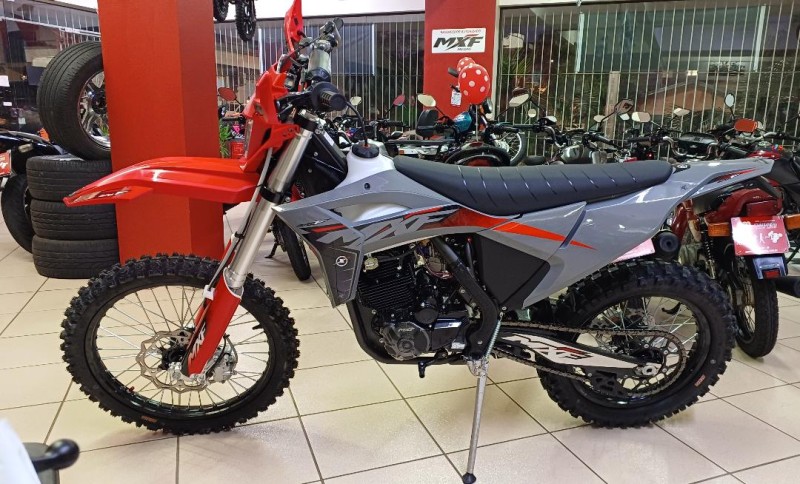 Apresentamos com orgulho a 270F, uma moto revolucionária no mercado off-road nacional. Equipada com um potente motor 4 tempos a gasolina de 271cc, gerando 24 cavalos a 8500 rpm e um torque de 23 Nm a 6000 rpm, proporcionando força excepcional para enfrentar diversos terrenos. Sua transmissão de 6 marchas e carburador Nibbi 34mm garantem desempenho superior, enquanto o quadro de aço liga Cromo Molibidênio oferece resistência e durabilidade.